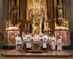 Quina alegria veure la Basílica de Valldeflors plena de gom a gom: tots els bancs ocupats per fidels, al igual que totes les capelles laterals, gent d’en peus al darrera del temple i tots plegats compartint un mateix sentiment: celebrar el neixement de Maria i la seva advocació en la nostra Mare de Déu de Valldeflors.